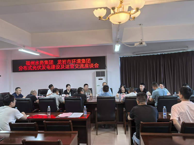 座談會上,雙方就深化合作、推動企業(yè)高質(zhì)量發(fā)展進(jìn)行交流。林炳榮總經(jīng)理詳細(xì)介紹了公司業(yè)務(wù)板塊、生產(chǎn)經(jīng)營、科技創(chuàng)新、項目建設(shè)等相關(guān)情況;林江副總經(jīng)理就鐵山污水處理廠光伏發(fā)電項目策劃、設(shè)計、施工、并網(wǎng)、運(yùn)維等全流程進(jìn)行了全方面的介紹,雙方就相關(guān)領(lǐng)域進(jìn)行了深入的溝通和交流。胡發(fā)勝表示,光伏發(fā)電具有綠色低碳、可再生的特點(diǎn),龍巖市環(huán)境集團(tuán)因地制宜地開發(fā)建設(shè)分布式光伏發(fā)電項目,實(shí)現(xiàn)經(jīng)濟(jì)效益、生態(tài)效益和社會效益的有機(jī)統(tǒng)一,提供了可借鑒、可復(fù)制、可推廣的經(jīng)驗(yàn)。